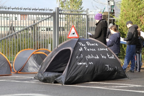 ![]() Occupy Northwood Military HQ- Catholic Workers Blockade Entrance to Base 16 Catholic Workers closed and occupied the Main Entrance of Northwood Military Headquarters. Scott and Maria Albrecht, Henrietta Cullinan, John Lynes and Rachel Wood pitched tents, knelt and prayed in front of the main gate for 2 hour while others vigiled holding signs. Thursday Dec 29 2011 16 Catholic Workers closed and occupied the Main Entrance of Northwood Military Headquarters. Scott and Maria Albrecht, Henrietta Cullinan, John Lynes and Rachel Wood pitched tents, knelt and prayed in front of the main gate for 2 hour while others vigiled holding signs. One tent had the words, “The Prince of Peace pitched his tent among us” John 1:14. A sign said, “War is not a Solution” which is a direct message from the Young Afghan Peace Volunteers and another Pvt. Bradley Manning’s Quote, “Exposing the true nature of 21st Century asymmetrical Warfare”. A banner stating, “Occupy Northwood HQ not Afghanistan” was hung on the fence. The gate remained closed for the duration of the occupation. The Catholic Worker group had gathered to mark the Feast of Holy Innocents; when Catholics remember the children murdered by king Herod in his search for the infant Jesus. Catholic Workers make the connection with the powerful who continue to kill the innocents today in war, specifically Afghanistan. Northwood HQ is the command and control center for British forces in Afghanistan, all joint forces and NATO operations abroad. Northwood HQ has recently experienced a £1.2 billion building project; these funds could have otherwise benefited the community. The five occupiers were: Maria Albrecht (50), Scott Albrecht (49) from the Catholic Worker Farm, Hertfordshire, Henrietta Cullinan (50) from the Catholic Worker in Hackney, John Lynes (83) Quaker from Hastings and Rachel Wood (28) from the Catholic Worker group Sheffield. A group statement said, “At a time when government cuts are affecting innocent children, pensioners, teachers, the sick and refugees the last thing we need to be doing is to continue spending billions on warfare. Human lives are the deepest cost. The government complains about a few tents occupying a small square outside St. Paul’s cathedral while we’ve sent thousands of soldiers to occupy other people’s countries and destroy their lives. This government needs to get its priorities right”. |