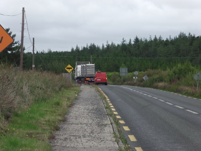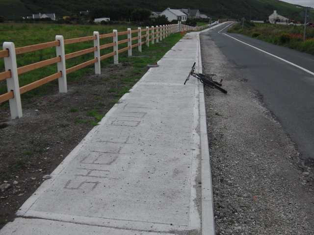 Since 2008 - on the section between Glengad and where it ends at the North coast road - any parts that can be have been widened, replacing it with highway more akin to a national primary route than a local scenic road. In the process hedgerows and habitats have been destroyed to be replaced with concrete footpaths, picket fences and street lighting, all in the name of community development, funded by Shell and administered by Mayo County Council.