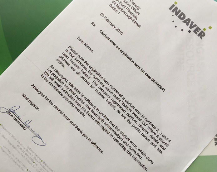 Immediately addressing issues relating to the identity of the applicant, namely that the planning application made in the name of “Indaver Ireland Ltd” differed from the applicants name in public notices in newspapers which quoted “Indaver Ireland’, Mr Noonan highlighted that the subsequently confirmed applicant “Indaver Ireland” is a business name, not a legal person and it cannot make a valid application under Section 37E. Indaver have attributed the discrepency to a ‘clerical error’.