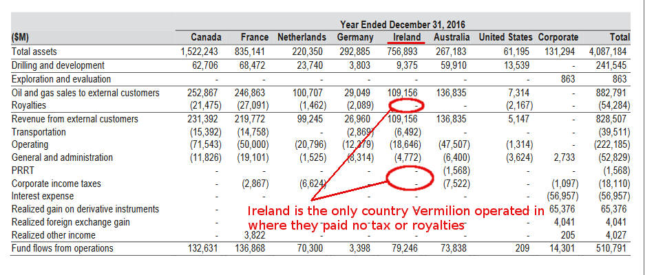 Taken from Pg 50 of Vermilions Annual Financial Report 2016: available