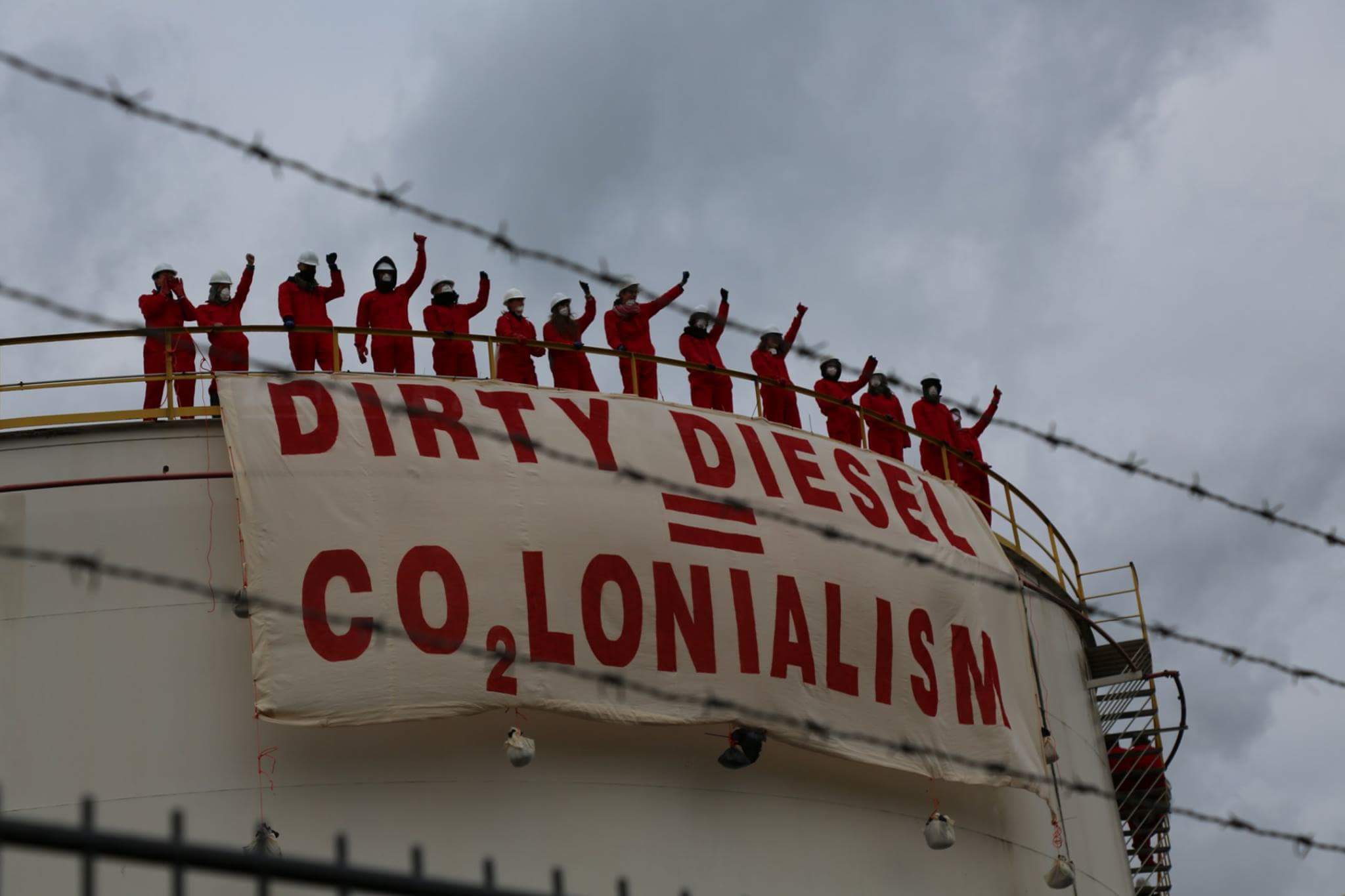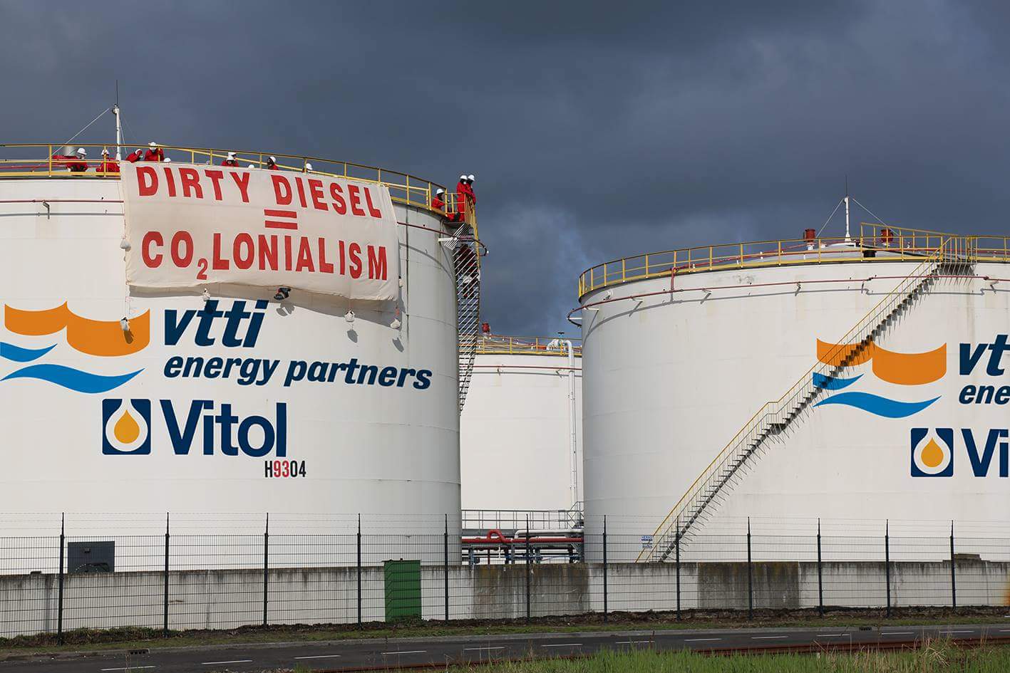 On Saturday morning, a group of 25 people entered the terrain of gasoline trader Vitol in the Amsterdam harbour, forcing a suspension of all activities on the terrain. Their message: Stop the export of toxic gasoline to West-Africa – and end the era of fossil fuels.