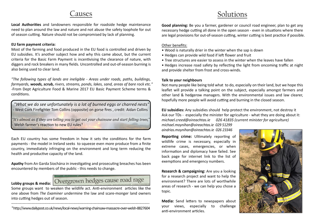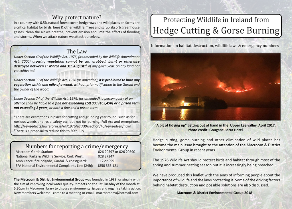 Protecting WIldlife in Ireland from Hedge Cutting and Gorse Burning