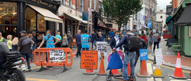 Campaigners ‘liberate’ Dublin’s South William Street from cars for the day