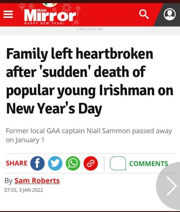 Young people don't just drop dead in the numbers we are now seeing. The two reported here are not the only ones. When are the public ever going to snap out of their trance in sufficient numbers to put a stop to this madness