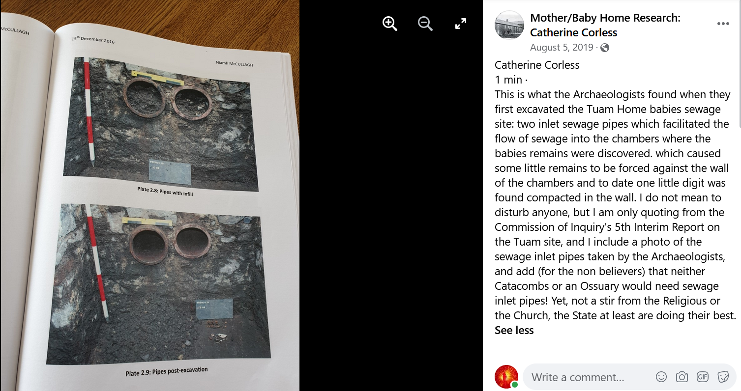 “The majority of those women were not allowed to bring their children home.” 31 And from the same journalist: “So a huge amount of children were adopted from these institutions, forcibly in the large majority of cases, from mother’s who didn’t wish to give up their children or to be separated from them.” 32 This was never true and is comprehensively debunked by the Commission report, which says the mothers: “...were always free to leave if they took their child;” 33 While the canard about ‘forced adoptions’: “Some former residents and lobby groups have suggested that ‘adoption’ should be renamed ‘forced adoption’. The Commission does not agree. The Commission found very little evidence that children were forcibly taken from their mothers;” 34 I don’t mean by this to state that the Commission’s report is above criticism, quite the contrary, but there simply was never plausible evidence at all for this kind of incarceration, a fact very obvious before the report came out, as this writer tried to point out to Alison O’Reilly at the time.35 There are no doubt many other issues that could be raised here but hopefully the above points will suffice to cause people to pause before they believe this film was a truthful description of the Tuam Children’s Home. Footnotes The Missing Children film/documentary was broadcast on RTE1 TV on 9/11/2021 and two days earlier on ITV. Can be seen here and presumably on the ITV equivalent for those in the UK: https://www.rte.ie/player/movie/the-missing-children/240535592138 . When referring to the Commission report, it is to the final report of the Irish government’s Mother and Baby Homes Commission of Investigation, available here: https://assets.gov.ie/118565/107bab7e-45aa-4124-95fd-1460893dbb43.pdf and the page references are to the electronic pdf numbers of the full report. 1. https://www.facebook.com/1381096678815670/photos/catherine-corless1-min-this-is-what-the-archaeologists-found-when-they-first-exc/2306973739561288/ . 2. 24:14. These are times in the film. 3. 4:38 4. https://www.nytimes.com/interactive/2017/10/28/world/europe/tuam-ireland-babies-children.html . 5. 29:20. 6. p.71. These page numbers refer to the Commission report. 7. p.30-31, 71. 8. p.897. 9. p.71-72. 10. 6:52. 11. Tuam Herald 12/6/2014, p.10. 12. http://www.dailymail.co.uk/news/article-3208567/Five-mothers-buried-mass-grave-tuam-New-dark-secret-home-796-babies-died.html . 13. RTE Radio1 Liveline Friday 3/3/2017, 6:44. 14. RTE Radio1 Liveline Tuesday 7/3/2017, 7:00 and 8:42. 15. 11:58. 16. 14:33. 17. 14:47. 18. p.8. 19. https://twitter.com/eugenejordan/status/1348723196934180864 . 20. Devaney Tape 1 40:06. 21. 31:48. 22. https://www.youtube.com/watch?v=ke7DhSQOYjE . 23. 30:40. 24. Brian Nugent, @tuambabies (Corstown, 2018) third edition, p.224. 25. 32:20. 26. 54:09. 27. 53:20. 28. p.16. 29. See the Commission report p.12, 862, 871, 872-3. 30. Brian Nugent, @tuambabies (Corstown, 2018) third edition, p.333. 31. 2:43. 32. 38:36. 33. p.89. 34. p.90. 35. https://www.youtube.com/watch?v=5FCFaP6GhoA 1:21:24. |