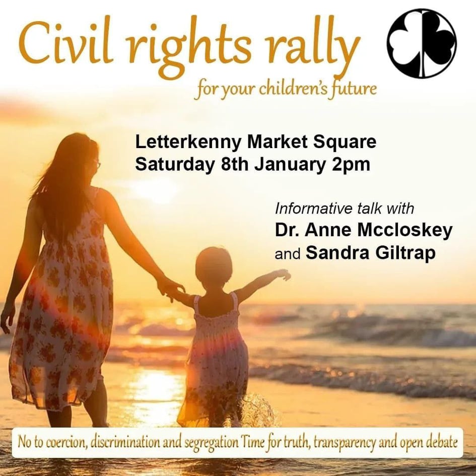 We do not, nor will not, involve any political or religious ideation in our campaign, Our one and only issue is medical coercion and the methods of medical coercion are the vaccine passport and the routine dehumanizing and vilification of unvaccinated people by the media and Irish government.