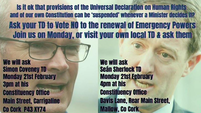 Lobby your TD to vote NO to renewal of Emergency Powers by the Govt national |
