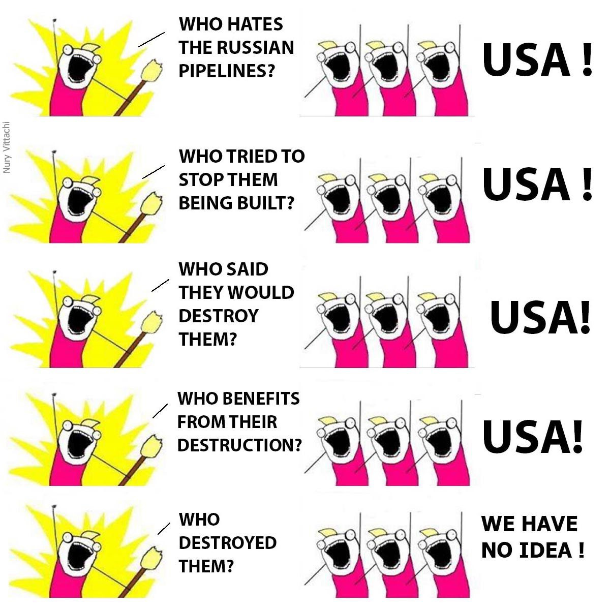 First off, there can be no doubt that Joe Biden’s America is the culprit. Not only had the USA the most to gain by this terrorist act which only a handful of militaries could have pulled off but, as Tucker Carlson shows , both Victoria Fuck the EU Nuland and Joe Biden himself had each earlier promised to decommission these pipelines by any necessary means and, as the same clip shows, these terrorist acts are part and parcel of America’s green energy policies, which Greta Thunberg, Extinction Rebellion and a host of other American assets have long promulgated.