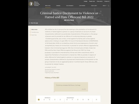 Here is some background to the legislation which is also found here: https://ichr.ie/the-abolition-of-freedom-of-expression-including-speech/ The Abolition of Freedom of Expression, Including SpeechOn the 28th of October 2022, the Government released a new bill titled the Criminal Justice (Incitement to Violence or Hatred and Hate Offences) Bill 2022 (hereinafter referred to as the “Bill”). In relation to this new proposed law, the Gov.ie website states the following: