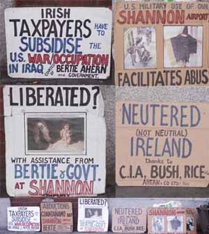 In echoes of the Nazi period, Aviation Authority bureaucrats responded to questions about their policies facilitating the U.S. war machine at Shannon with "we don't make policy, just mplement it!" The government attempts to transcend the moral questions implied with the response "Sure, it's nothing new, we were doing the same during the Vietnam War!" One wonders if the 2 1/2 million Indo-Chinese dead from that policy will be surpassed by the latest Bush/Blair/Ahearn effort.