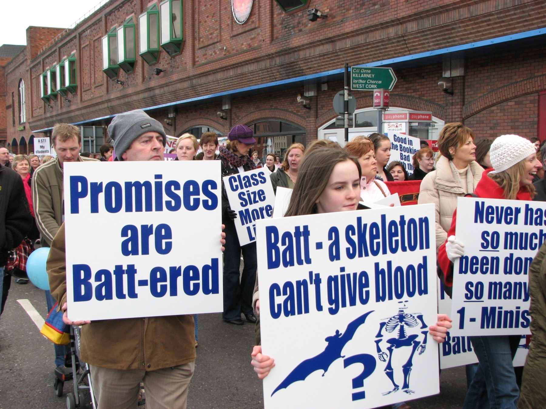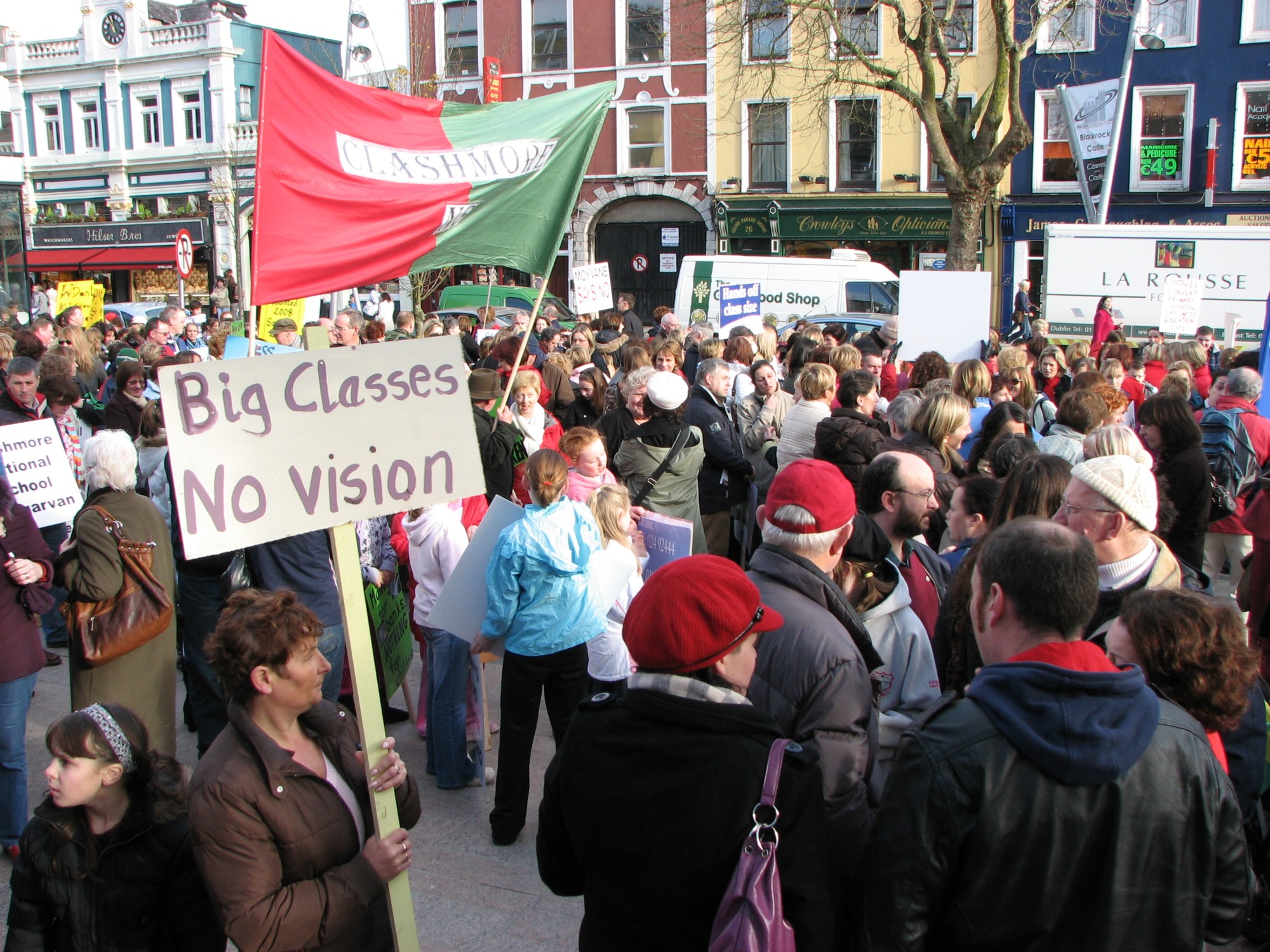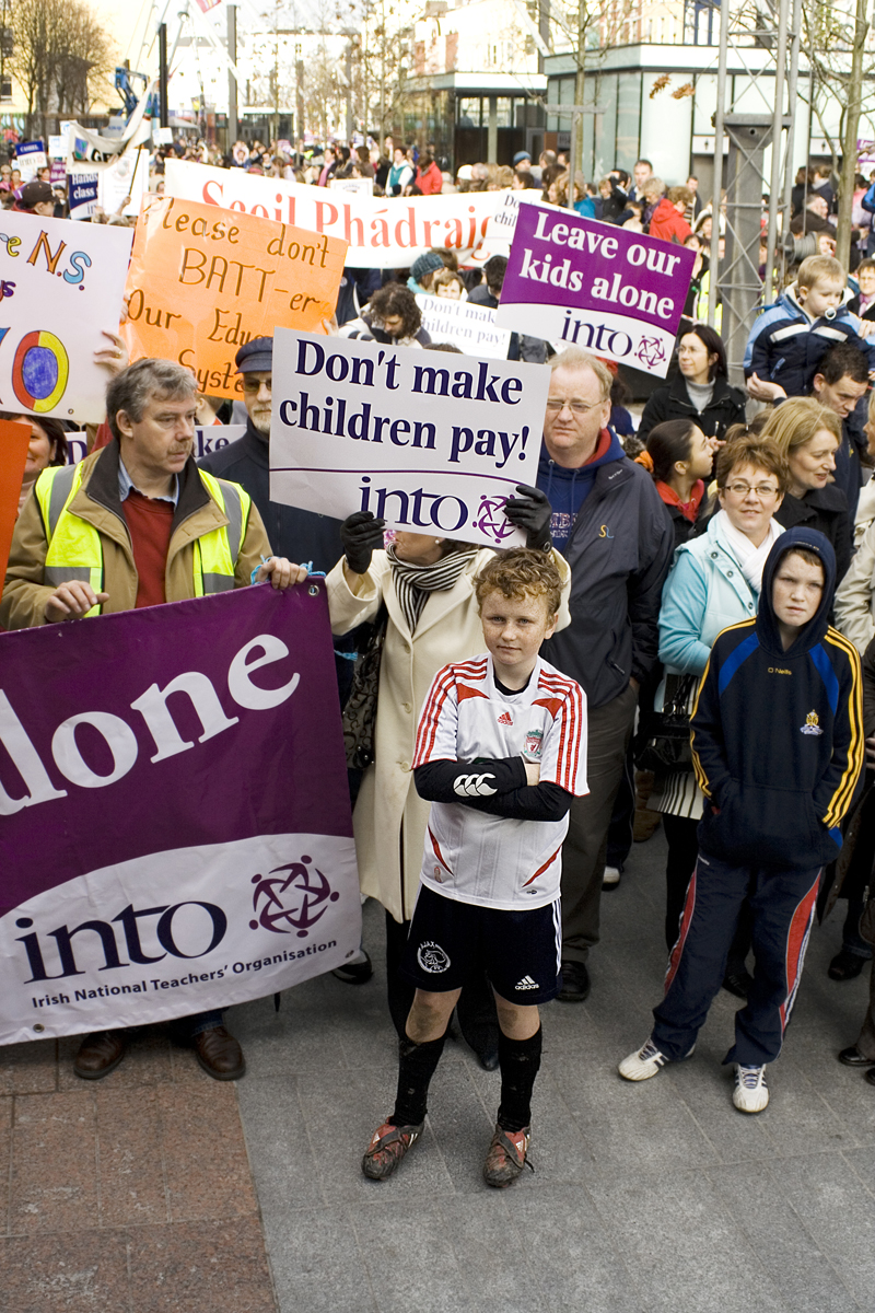 After the turnout in Cork today I hope that people will keep the pressure on not only the politicians but the unions as well. I must say that from a personal opinion I have been disappointed in the way that the unions have sided with the bosses in accepting the crumbs from the table on many occasions in the last decade or so. The unions should be held equally accountable in the current climate of cutbacks to Education and Health. If the unions actually fought for the people they supposedly represent and stopped cosying up to their new friends in big business and government then we would not be in this position of children having to take to the streets to defend what is rightfully theirs. If this does not happen, then it is time for people to join independent unions or fight for the removal of current union bosses and undemocratic structures within them.