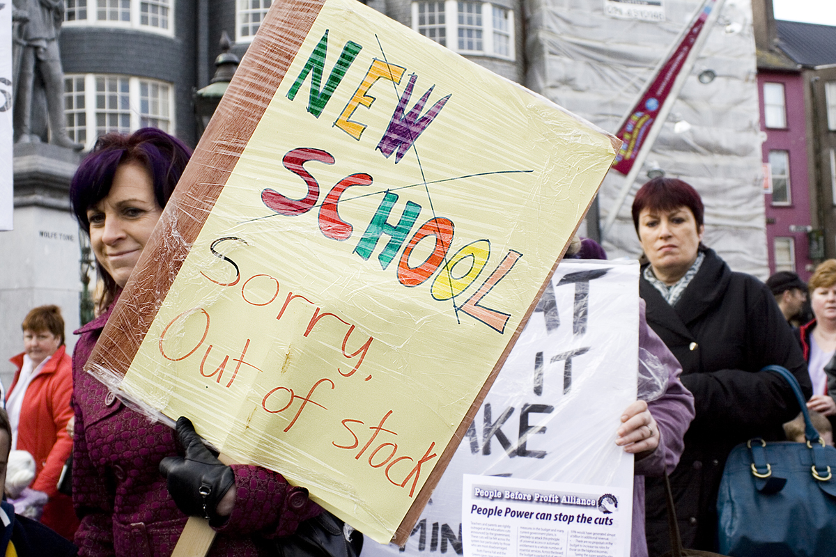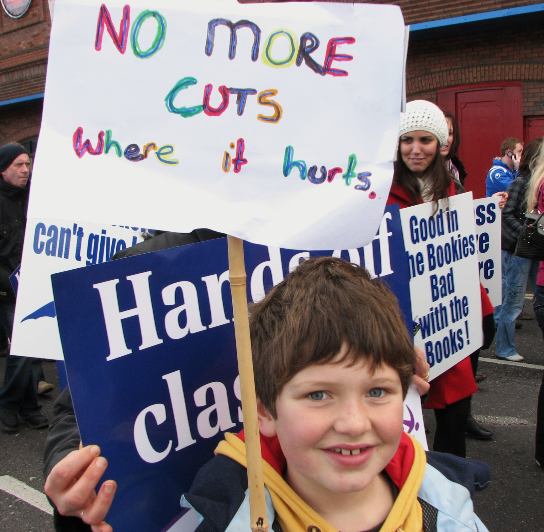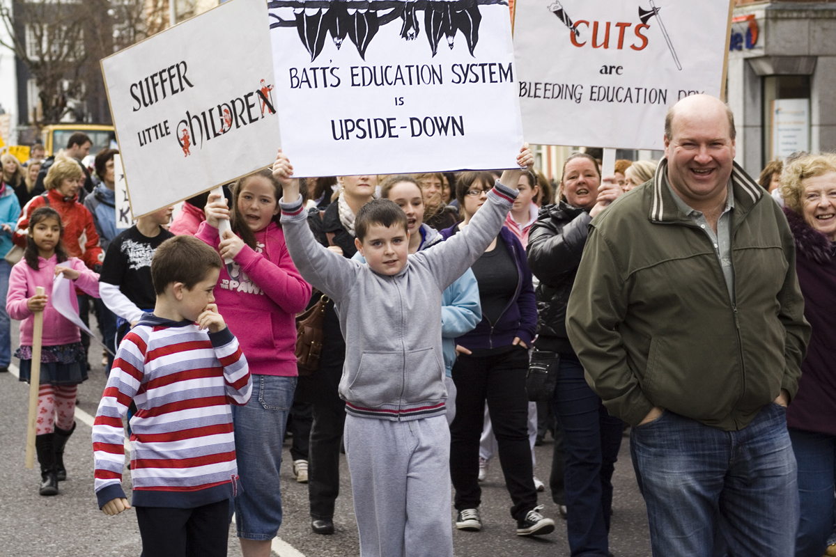 After the turnout in Cork today I hope that people will keep the pressure on not only the politicians but the unions as well. I must say that from a personal opinion I have been disappointed in the way that the unions have sided with the bosses in accepting the crumbs from the table on many occasions in the last decade or so. The unions should be held equally accountable in the current climate of cutbacks to Education and Health. If the unions actually fought for the people they supposedly represent and stopped cosying up to their new friends in big business and government then we would not be in this position of children having to take to the streets to defend what is rightfully theirs. If this does not happen, then it is time for people to join independent unions or fight for the removal of current union bosses and undemocratic structures within them.