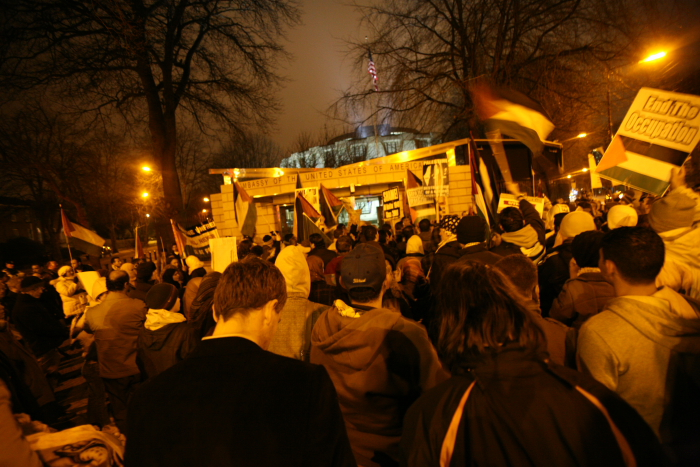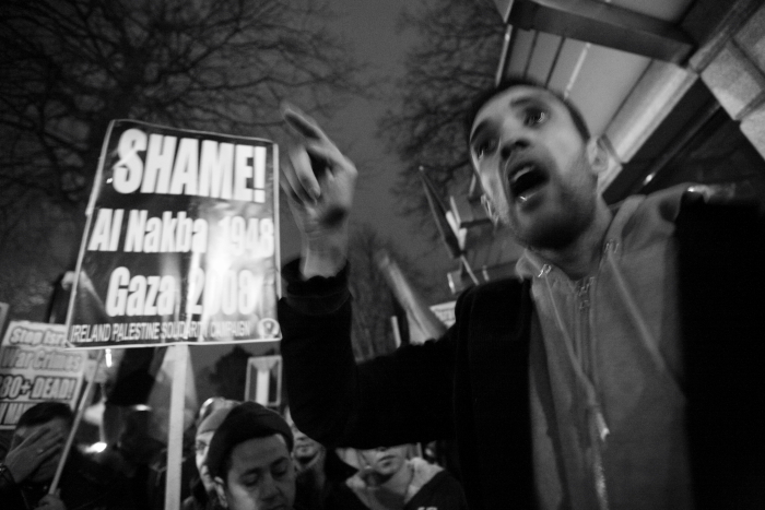 In the 29th of December 2008, hundreds of people gathered outside the Israeli embassy in Dublin, to demonstrate against Israel's offensive in the Gaza Strip.