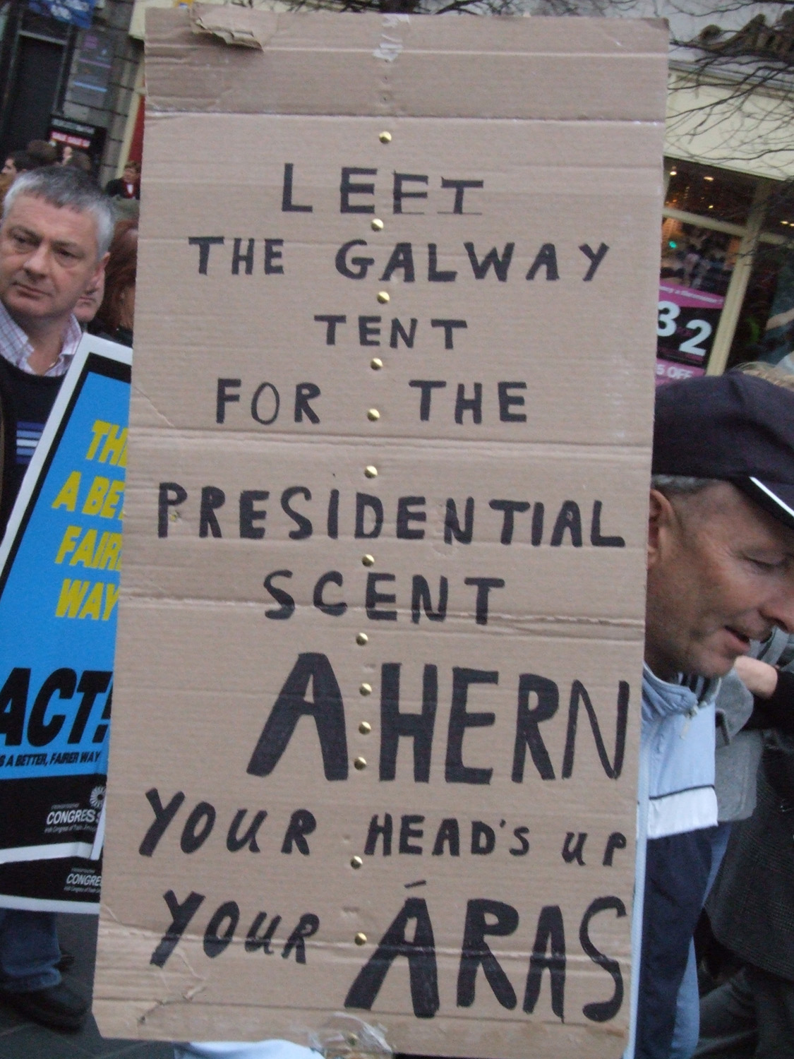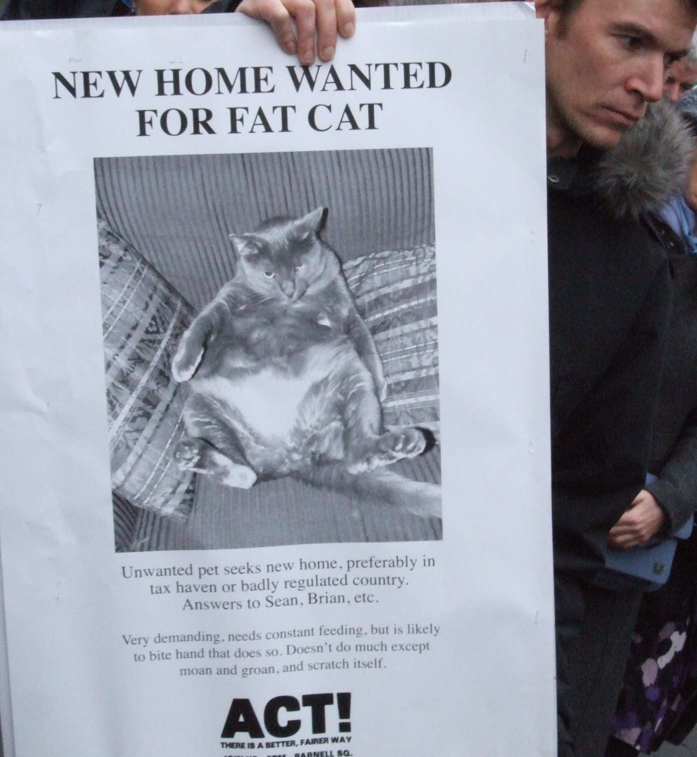 I must express my thanks to the Cork Branch of Impact for organizing our transport to and from Dublin on the day, and for the marvellous stop-over in Durrow, Co. Laois on the way for breakfast. It sure filled me up with good feelings towards the trade union movement, and added greatly to my enjoyment of the day. A debt of thanks is generally due to the thousands who made the effort to come together to show our strength of numbers. It is a re-assurance that while all of us may disagree on some basic issues, we are far from alone these days in how we feel. In spite of how Power has tried to divide us in the past and present, we remain united in our desire to resist what is about to be foisted on us. That really cheered me up on the way home!