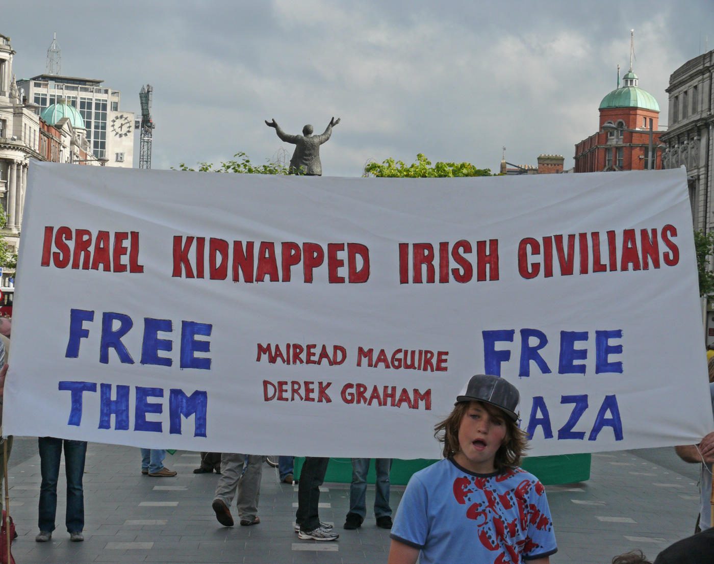 yesterday evening's IPSC protest at the Spire in O'Connell Street against Israel's brigandage and kidnapping of Free Gaza activists and supporters on a humanitarian mission to the Strip.