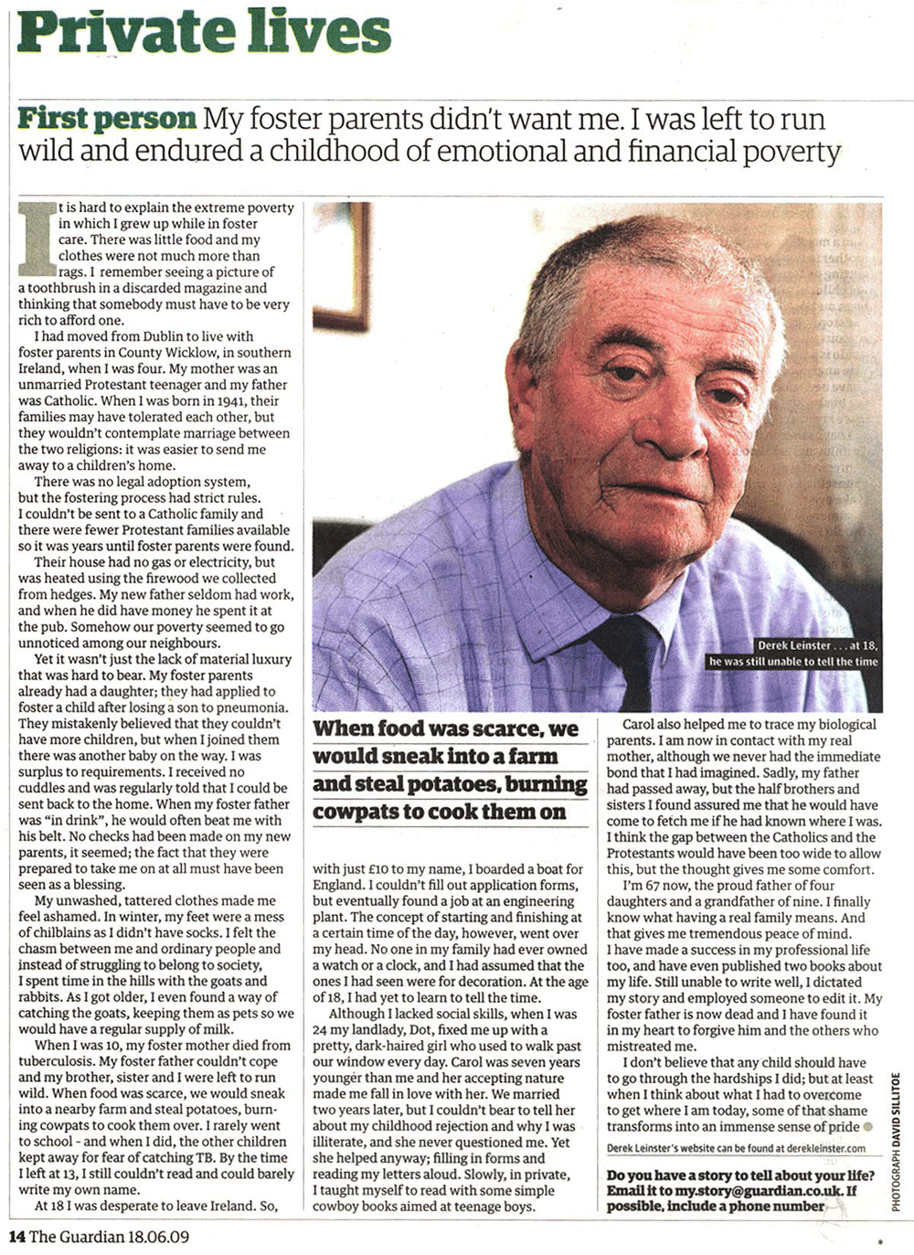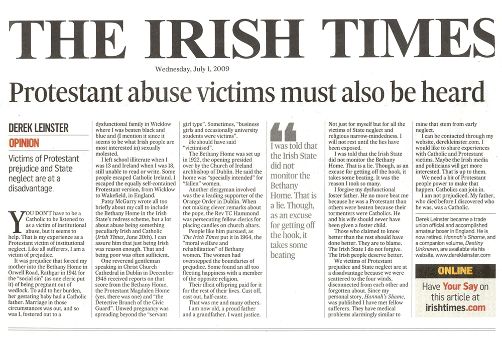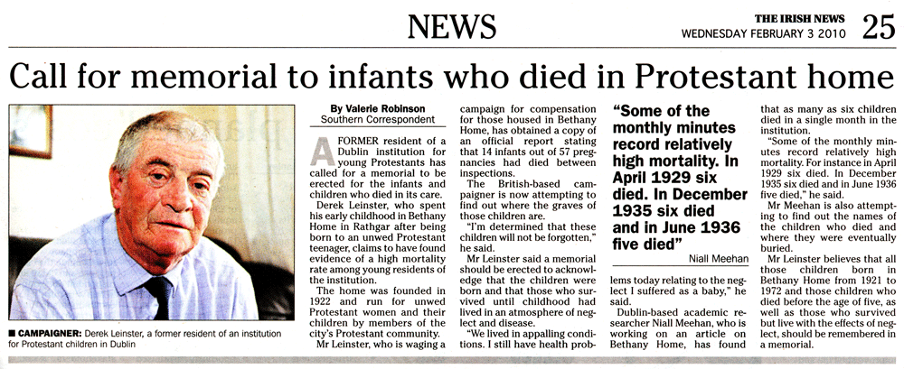 Derek Leinster - Bethany Home survivor - Irish Times - 30 March 2010