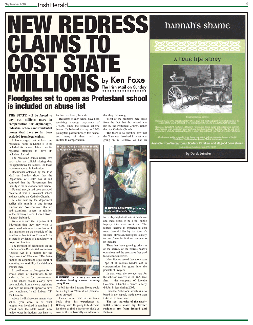 Article from Irish Mail on Sunday - also in Irish Herald (US) Sept 07