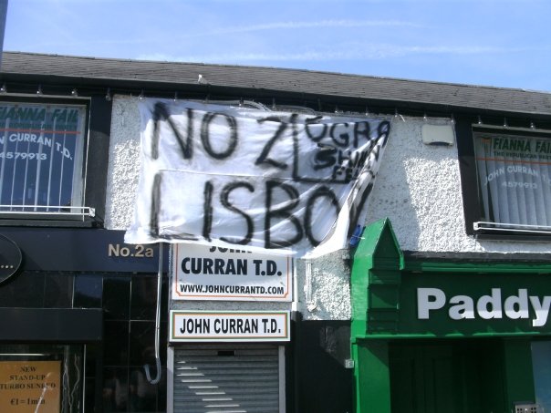 Sinn Féin and Dublin Ógra Shinn Féin in Lucan and Clondalkin held a day of action against the re-run of the Lisbon Treaty. Pickets were held at the constituency offices of Green party TD Paul Gogarty and Fianna Fail TD John Curran. Two large banners were erected on both offices by Ógra activists, which invited large support from passers by.