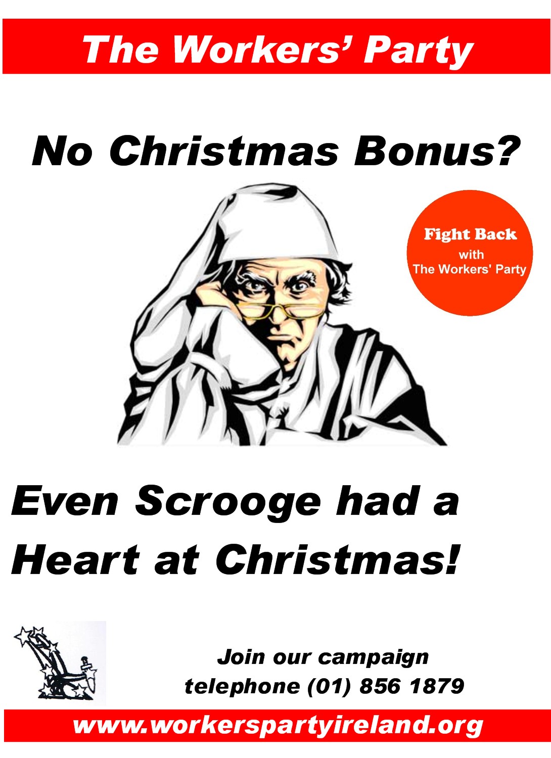 The Scrooge analogy is very appropriate. Like Scrooge, this is a wealthy country, one of the wealthiest in the world in fact. This is very evident from its ability to give the banks a massive financial guarantee to prevent their collapse. The cost of the Social Welfare Christmas Bonus (as outlined in the above statement) is a mere 0.5% of the cost of the bank bailout.
