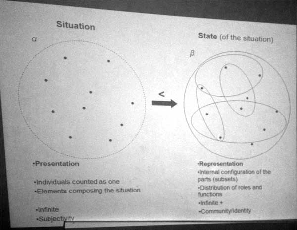 Discussion of presentations on the left and the ideas of Jacques Ranciere and Alain Badiou
