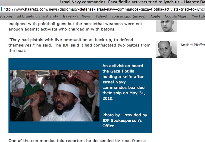 - IDF Retracts: That knife wielding flotilla "terrorist" photo debunked http://tinyurl.com/2wsn6tc