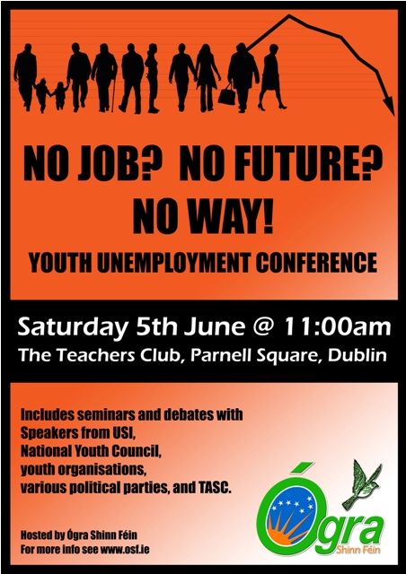 Ógra Shinn Féin has announced the final clár of their forthcoming National Youth Unemployment Conference, to be held in the Teachers Club in Dublin on Saturday the 5th of June 11am.