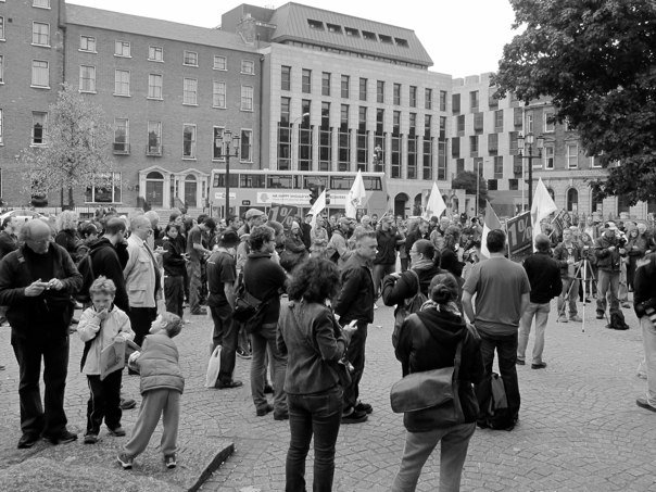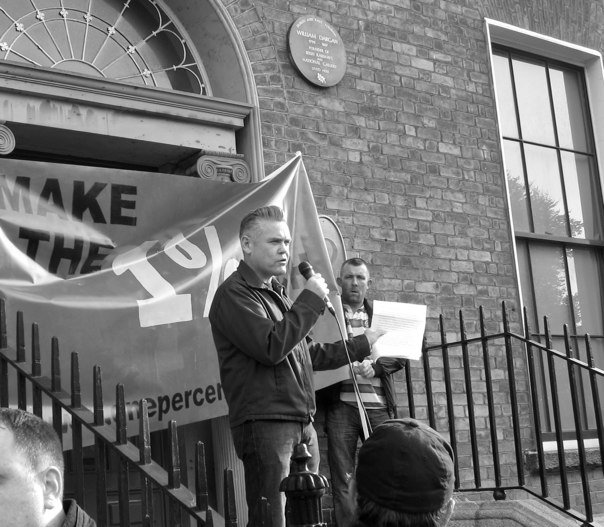 The ‘political walking tour’ was the first event to be organised by the 1% Network, a recently formed coalition of socialist organisations including Irish Socialist Network, Workers Solidarity Movement, Seomra Spraoi and éirígí. The groups involved have come together to oppose the political cutback agenda of the government and to promote a socialist alternative to the current socio-economic system.