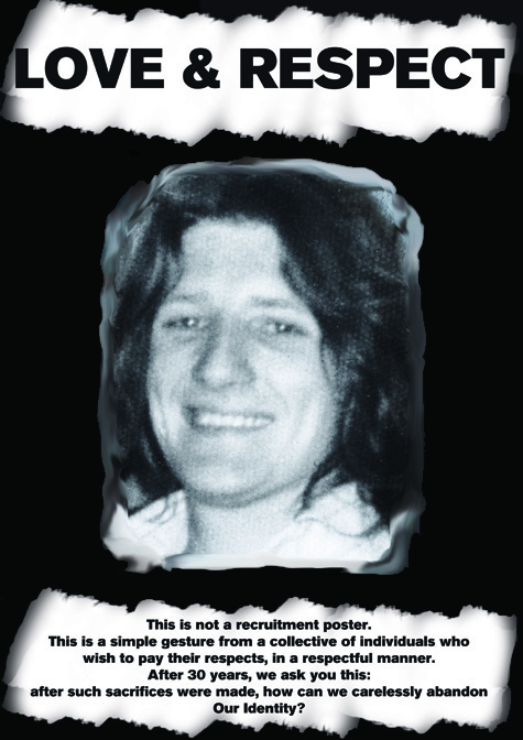 ..saw them there today alright and the 'identity' thing stuck out to me alright, i thought it strange that any real progressives would focus on that alone. Have to laugh as well, any time real republicans or anti-facists put stuff up they never last. With the new rebranding they look lovely, thanks a lot to those concerned. It would be the ultimate dillema for me if i bumped into them ejits puttin pictures of heroes up but knowin what theyre up to, but after a nice little chat with them i think i would eventually make the right decision and.......